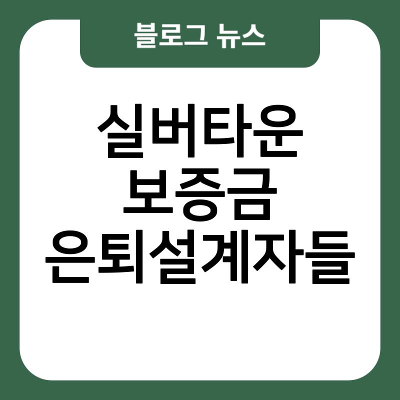 ▼ 실버타운 보증금 은퇴설계자들 상세확인 ▼